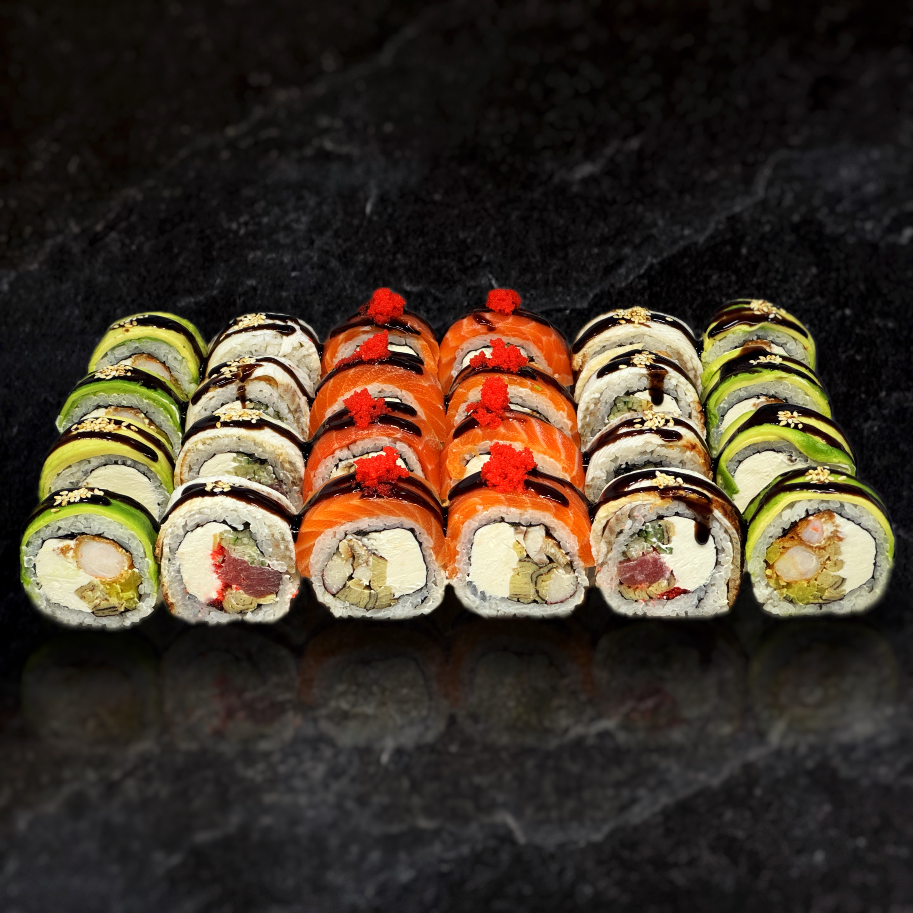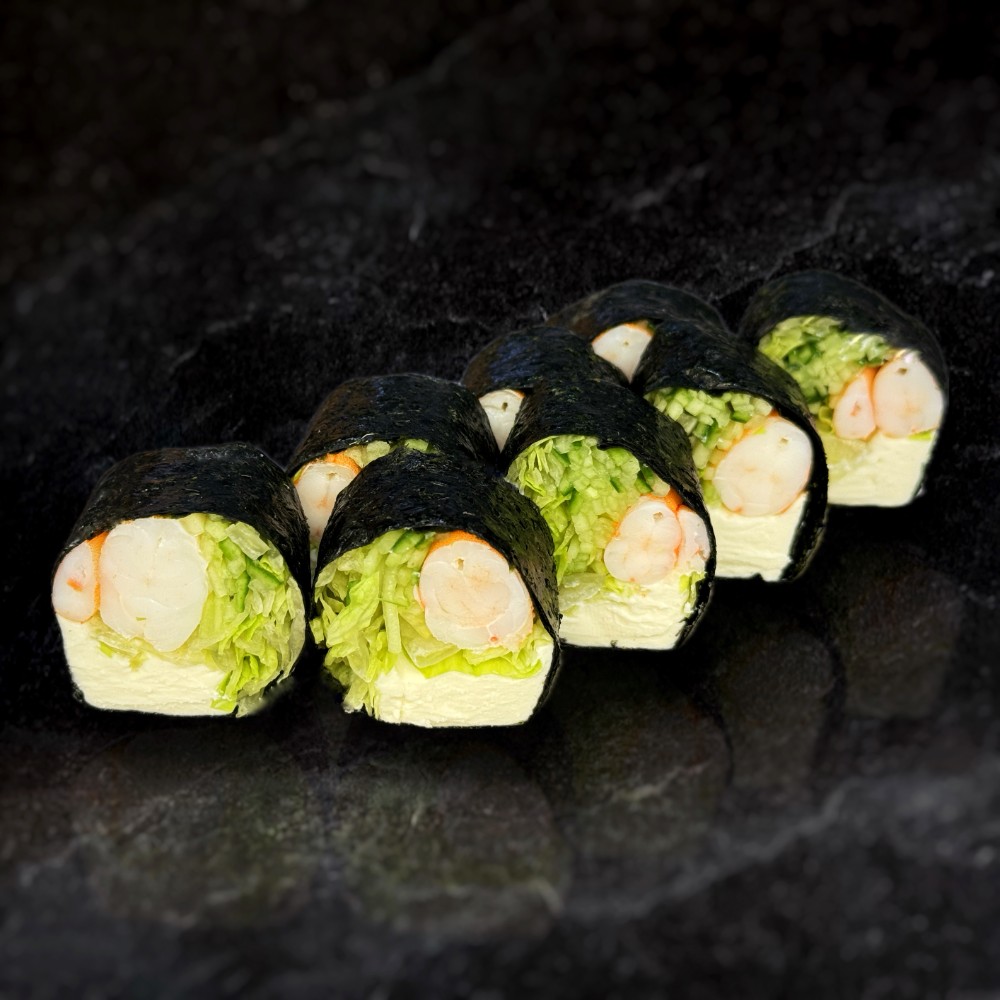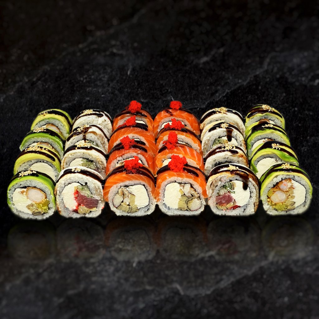 Філадельфія Міні, Унагі грін, Рол Маваші, Футомак з лососем, Темпура лосось, Темпура мідія, Темпура креветка , Запечений з тунцем, Запечений з окунем, Макі огірок, Макі лосось, Макі краб, Макі курка