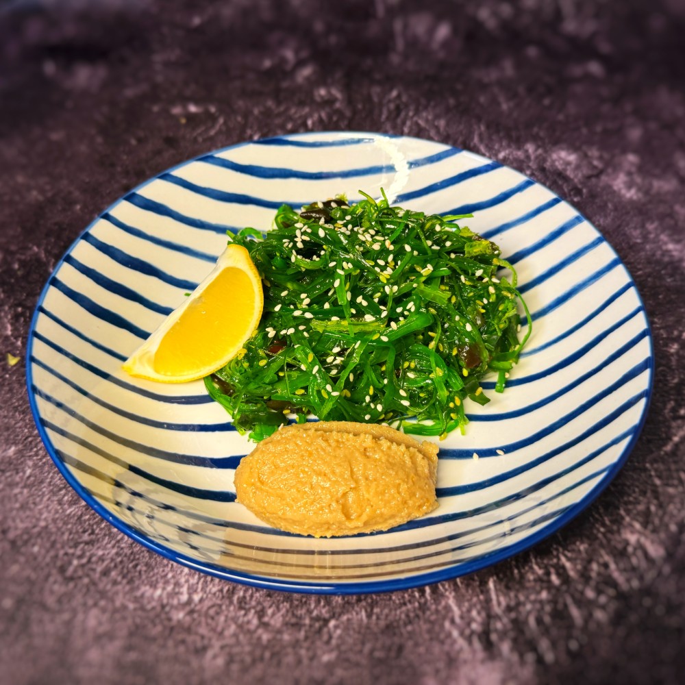Салат Хіяше Вакаме,лимон,соус горіховий,білий кунжут